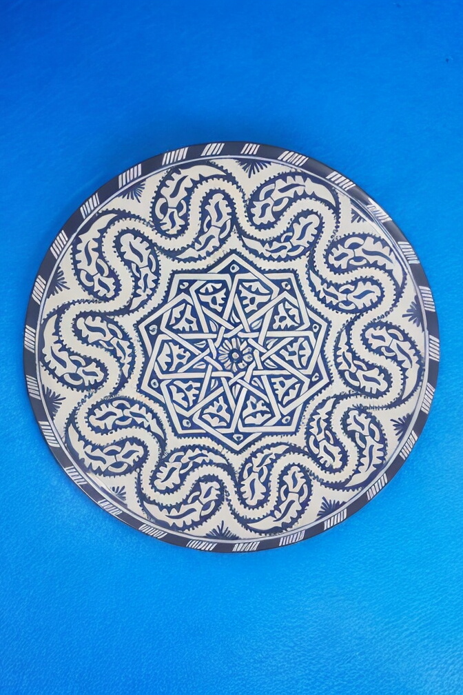 Elevate your dining experience with these exquisite Moroccan ceramic dinner plates, handcrafted in the heart of Fes. Adorned with intricate blue and white mandala patterns, these Handmaded ceramic plates showcase the rich heritage of Moroccan pottery. Each plate is a unique piece of art, perfect for serving meals or adding a touch of exotic charm to your home decor and food presentation
