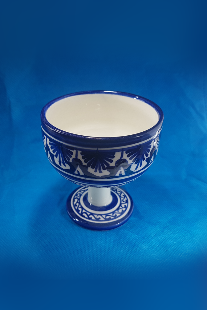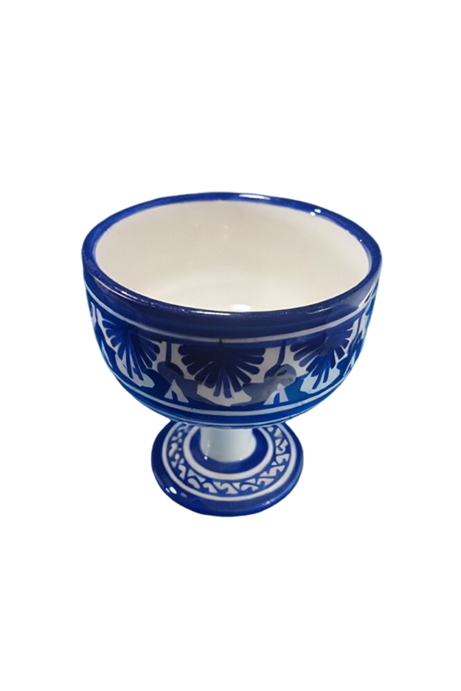 This exquisite Moroccan ceramic parfait bowl is a beautiful and functional piece for any table setting. Handcrafted by skilled artisans in Fes, Morocco, the bowl features intricate blue and white geometric patterns that are characteristic of traditional Moroccan pottery. The bowl is perfect for serving parfaits, desserts, or as a decorative piece.